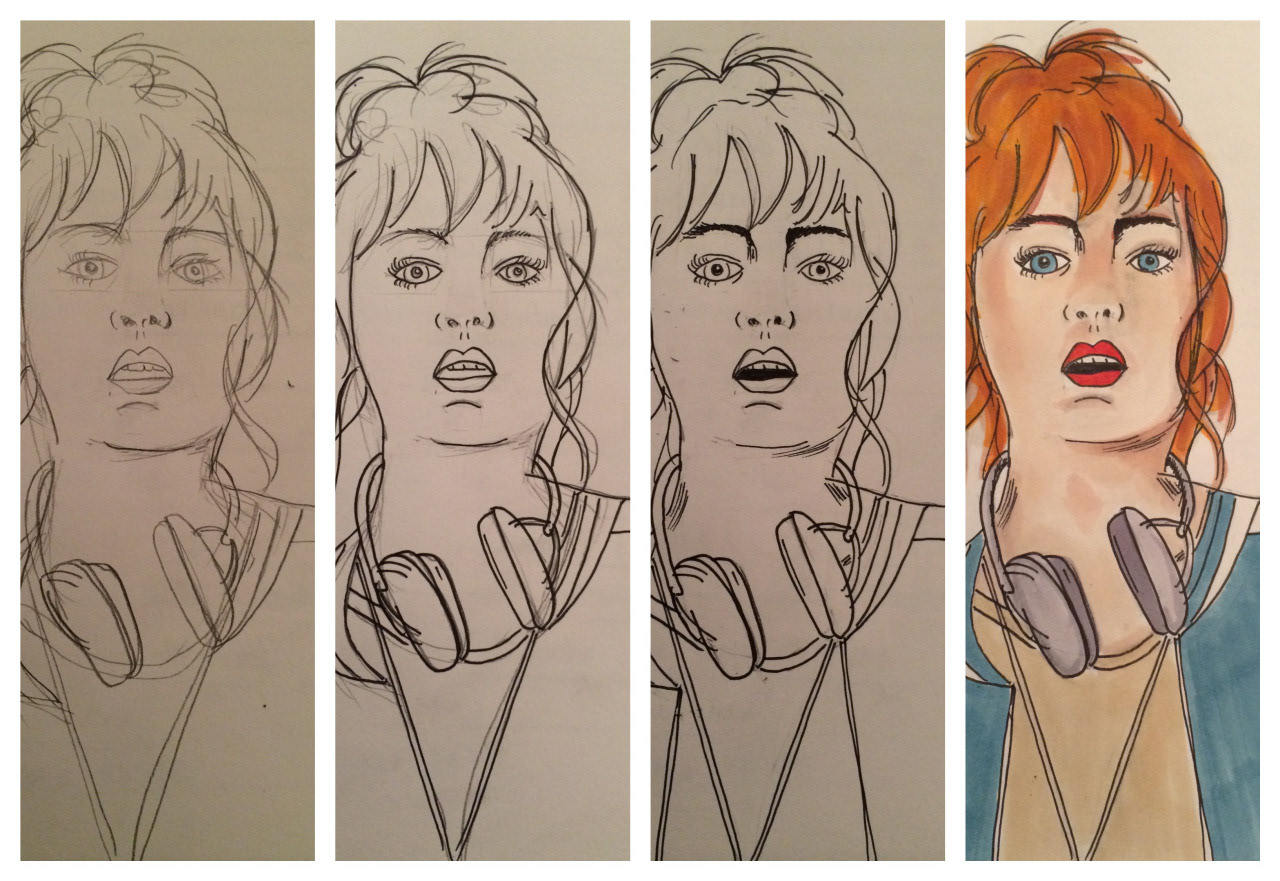 Voici quelques croquis coloriés au Flexmarker.